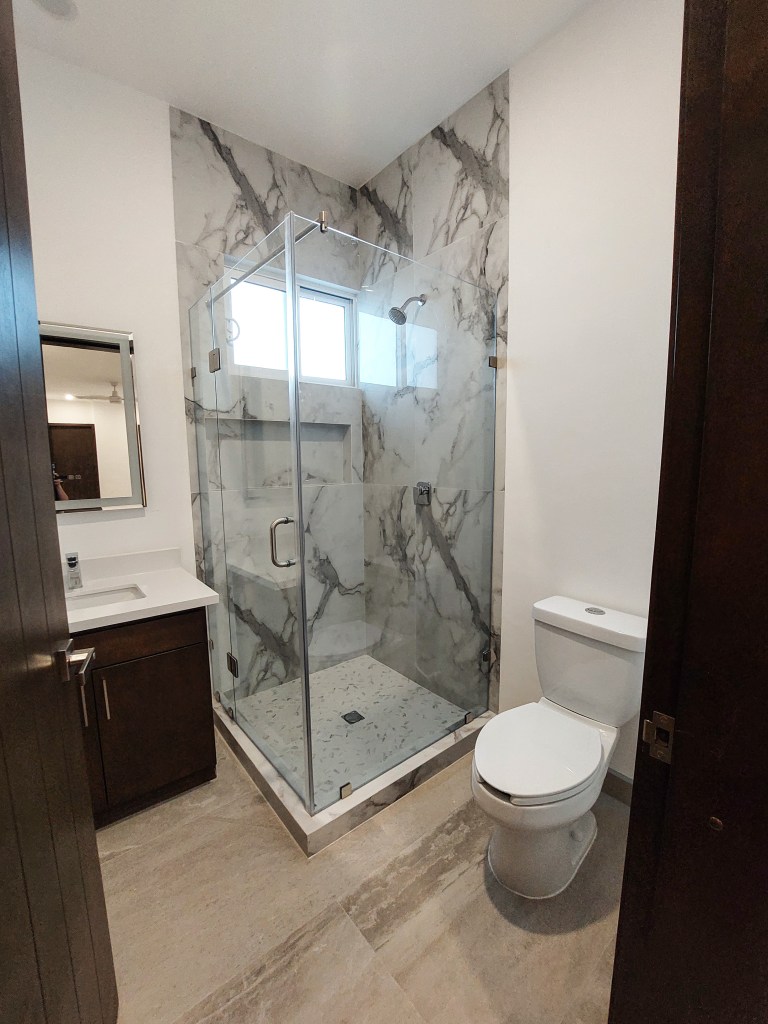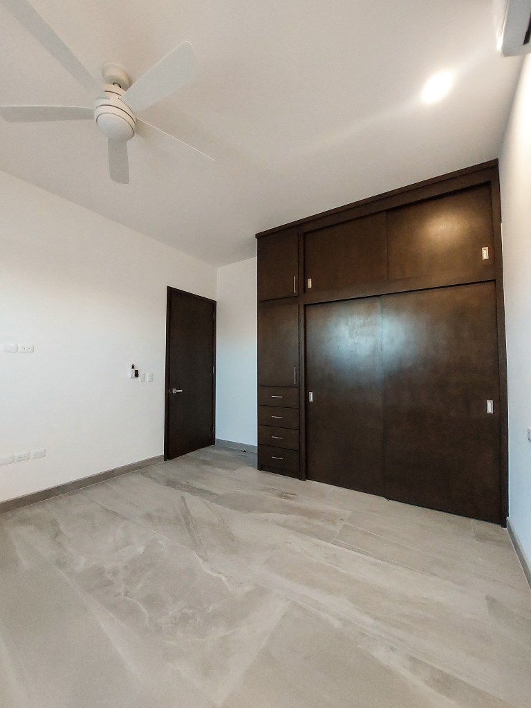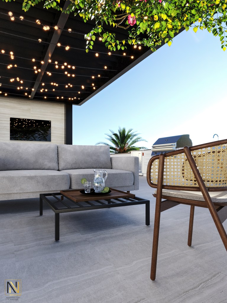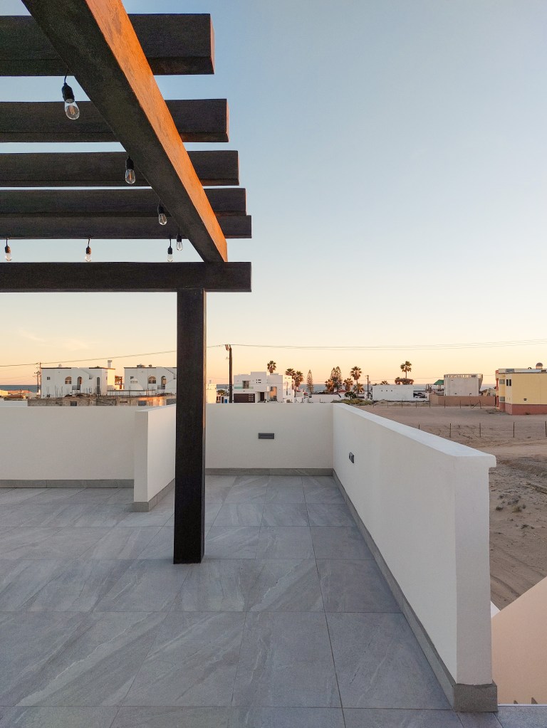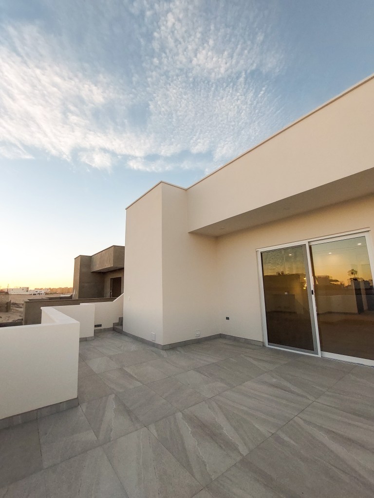 Las tres recámaras están estratégicamente ubicadas en la planta baja, proporcionado privacidad y tranquilidad. Cada recámara cuenta con su propio baño, utilizando tonos claros. La azotea se convierte en un espacio para disfrutar del aire libre y las vistas panorámicas.