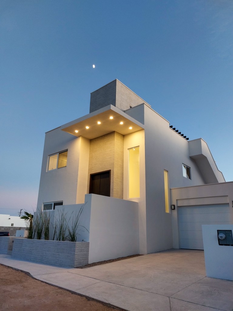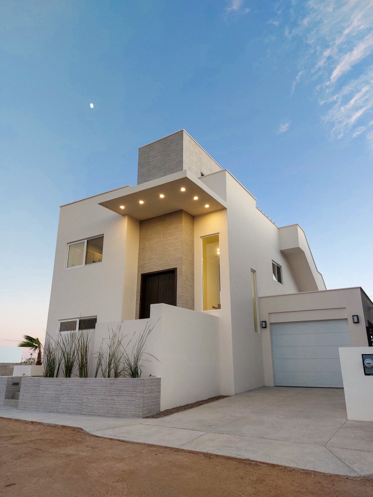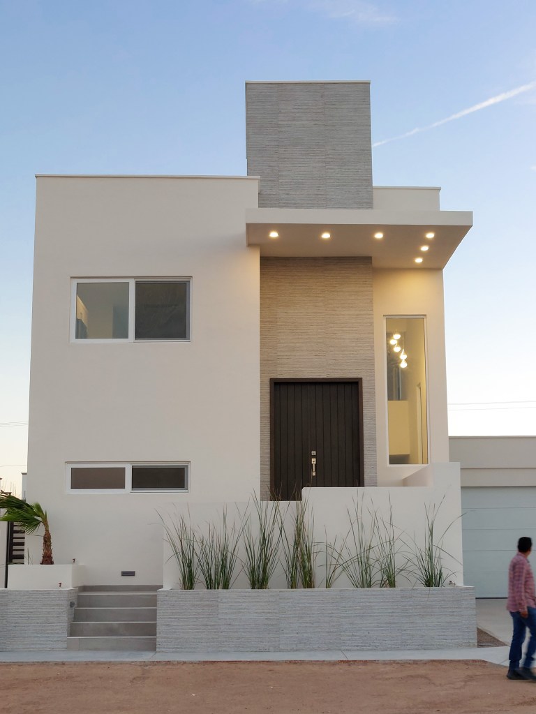 Este proyecto presenta una casa con un diseño innovador: Con el recibidor en un medio piso, las recámaras en planta baja y el área común en planta alta. Esta casa utiliza tonos claros que ayudan a integrarse armoniosamente con el entorno.